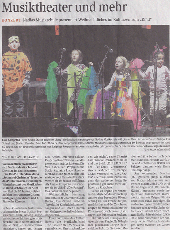 Main-Spitze vom 13.12.2012 über unser Weihnachtskonzert: